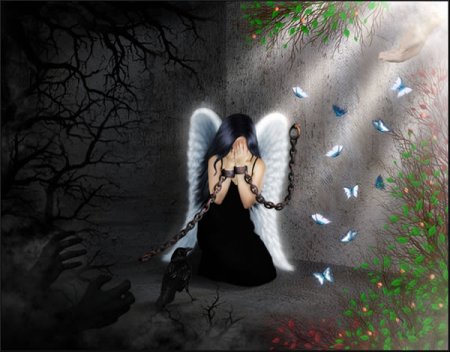 Ну да, раскрашивают... Чаще всего. Так это че, бес такой с крылышками, в кандалах и рогами обломанными? А сатана к нему руки протягивает и пытается спасти, забрать в свою державу? Комментарий автора: Думаю, что это человек, за душу которого идёт постоянная борьба. Но кто в ней победит? выбирает сам человек...