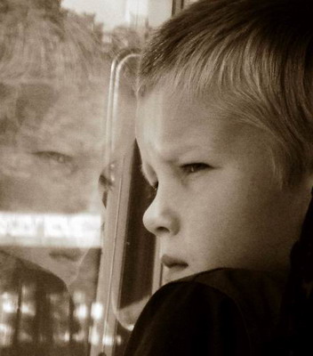 От окна не отходит мальчишка.